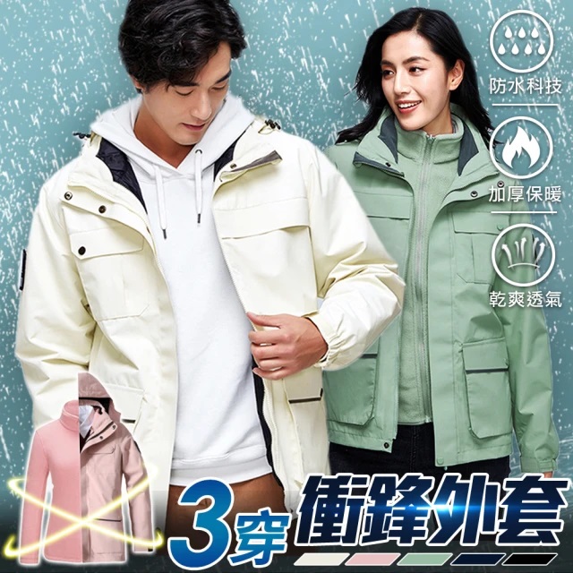 男女款SGS認證高機能防風防潑水三穿衝鋒外套(機能外套/一衣三穿/防風防潑水)