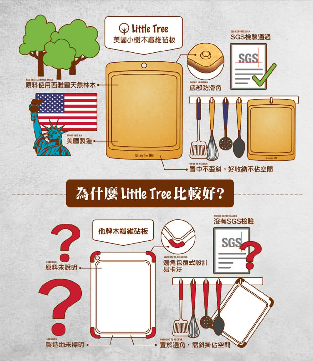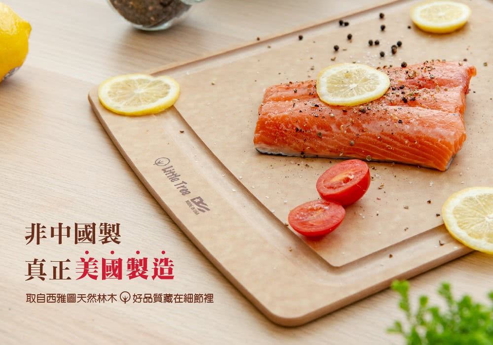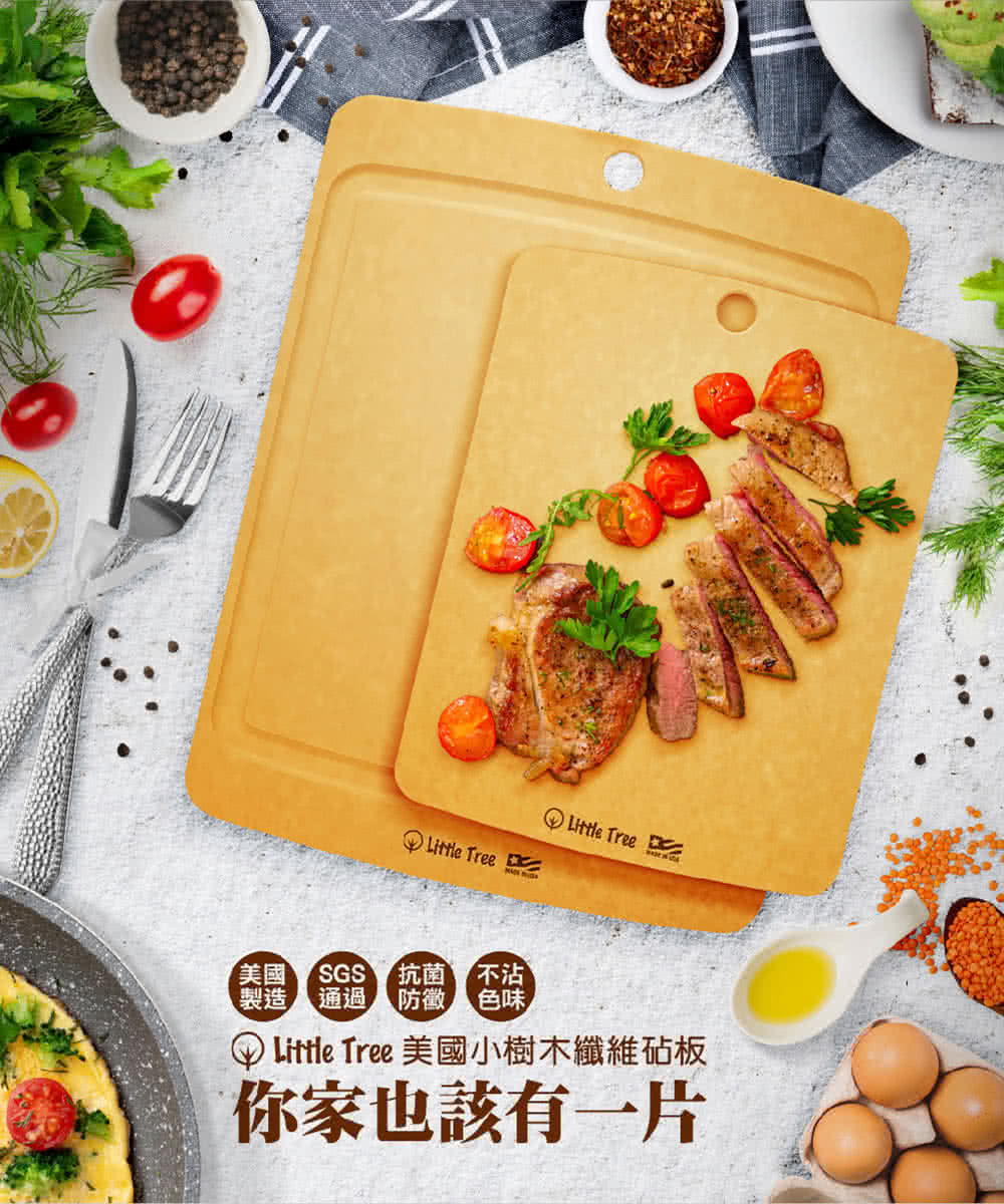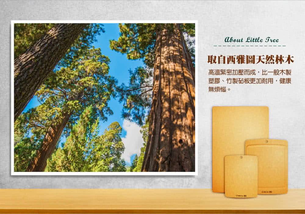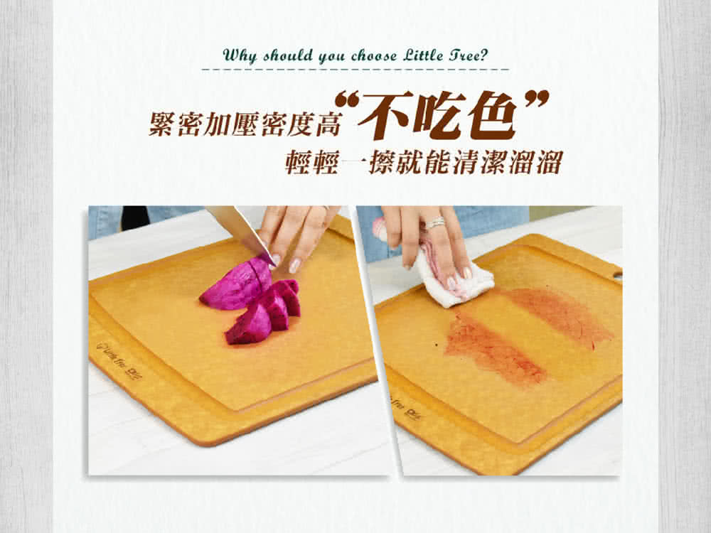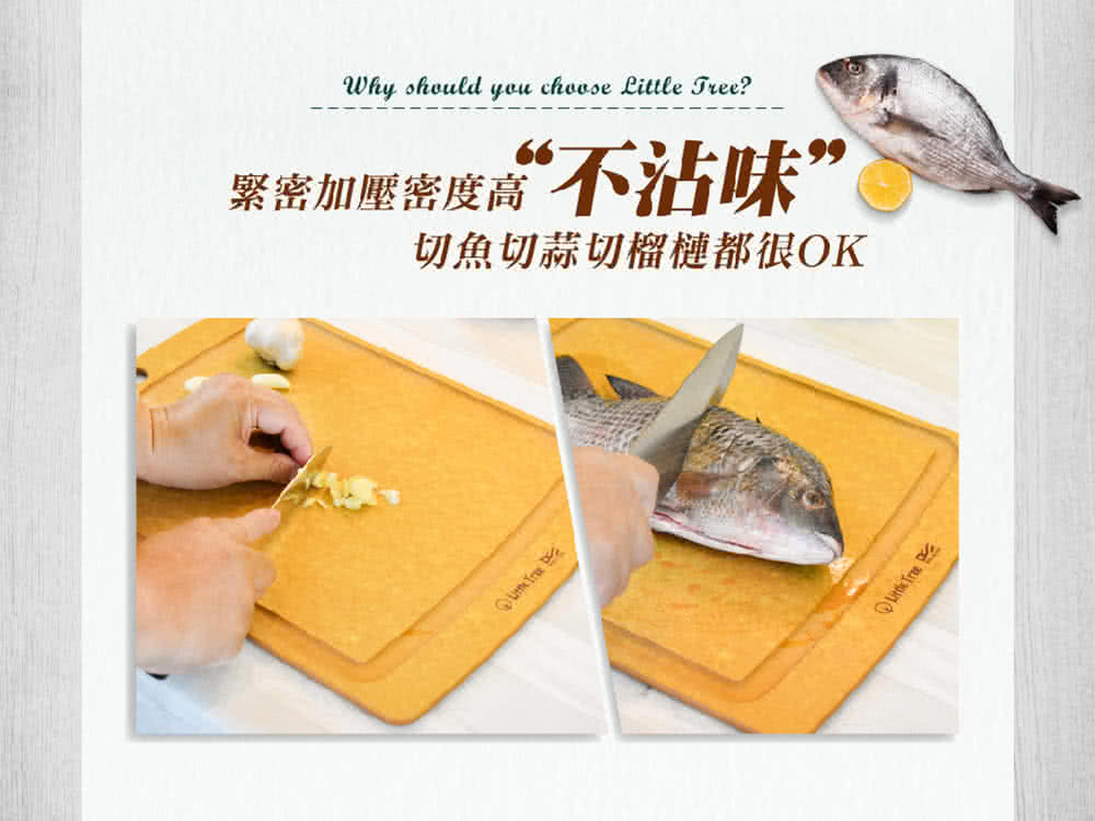 Little Tree以特殊熱壓技術製成,無毛細孔,醬汁水分不滲入且厚度僅0.6cm,改善傳統木砧板厚重的刻板印象。