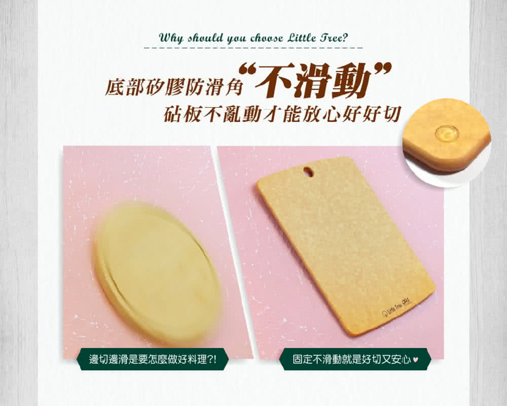 在底部添加圓形防滑角使砧板不易滑動,讓你在料理的過程中更加輕鬆容易。結合市面上砧板的優點,提供給您更優秀的選擇。